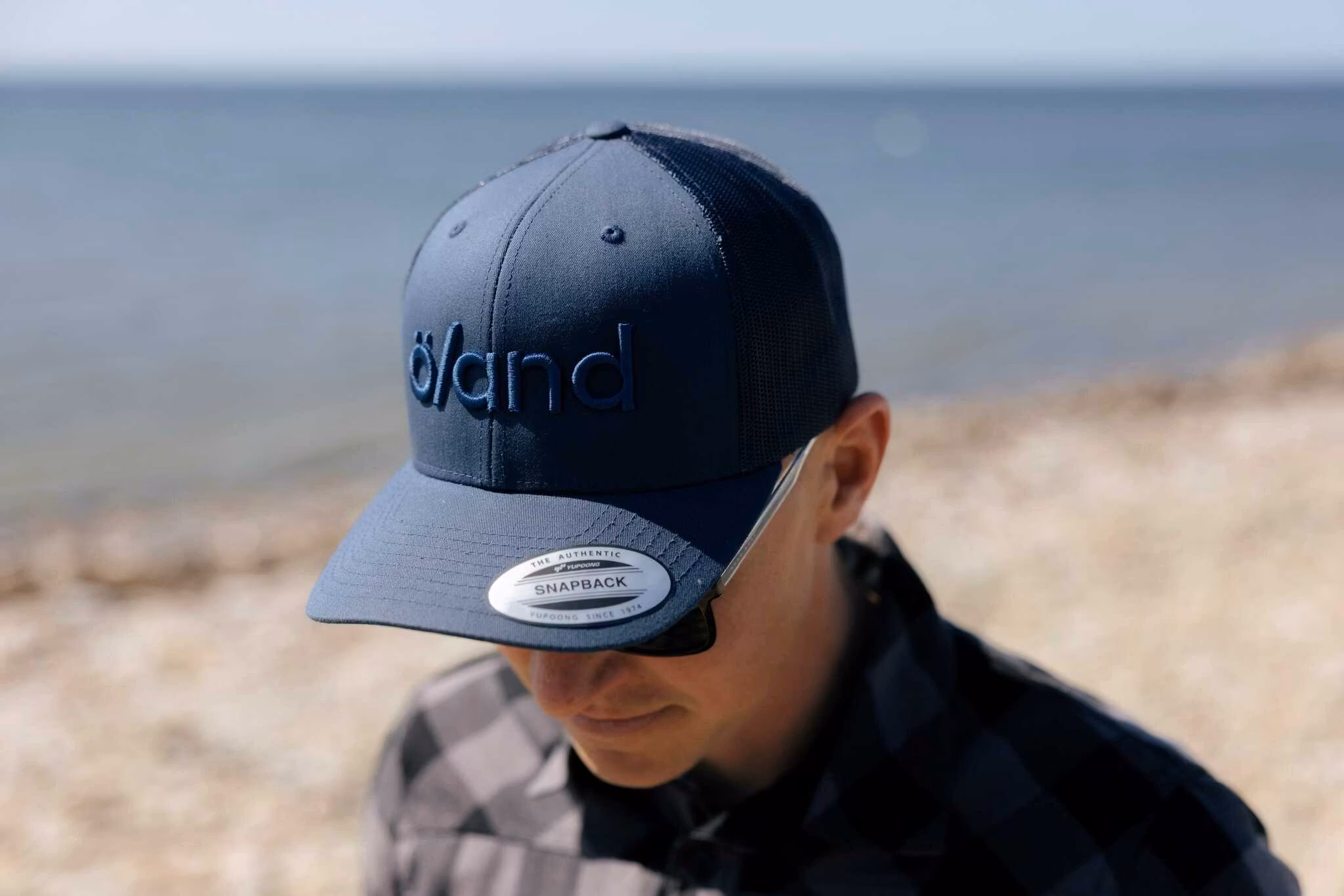 Marinblå truckerkeps med text ”öland”